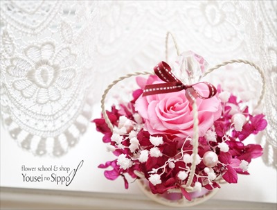 お作りいただいたのは、小さなプリザーブドフラワーのプチアレンジメント♪