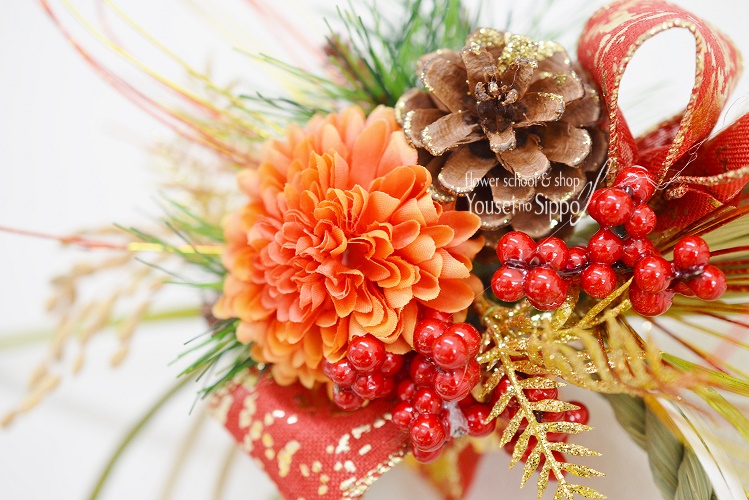 「皆と同じじゃつまらい!」と言う方は、通常コースの方でお好きな花材を集めてオリジナルのしめ飾りをお作りいただけます。